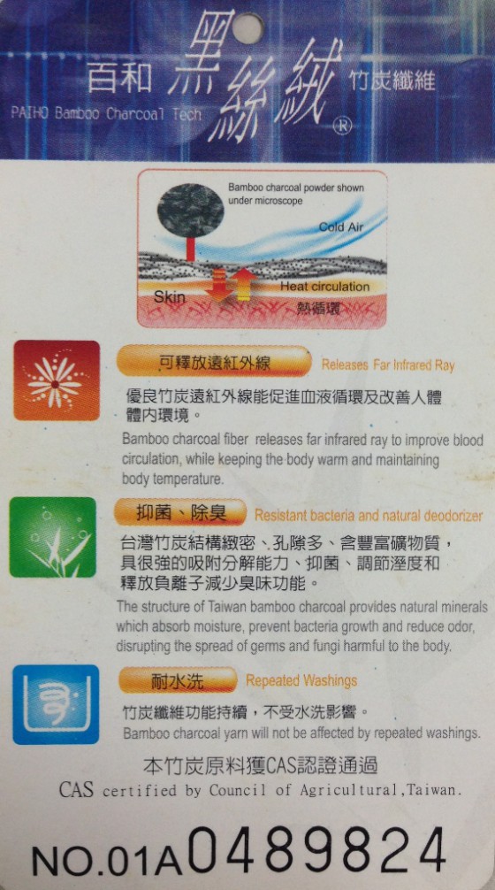 (3)耐水洗:竹炭纖維功能持續,不受水洗影響