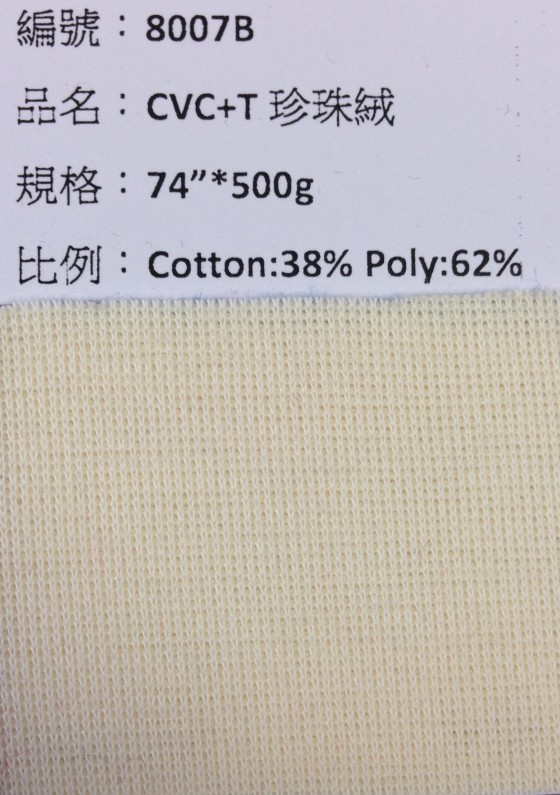 編號:8007B品名:CVC+T珍珠絨顏色:淺黃F80-6E規格:75"*550g同款其它顏色: 【白米D01】 【米黃D80-13E】 【玫紅E80-12A】 【深藍G80A】
