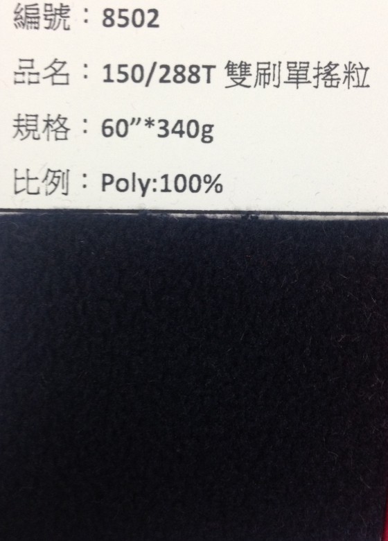 編號:8502品名:150/288T雙刷單搖粒顏色:大紅A80A規格:無